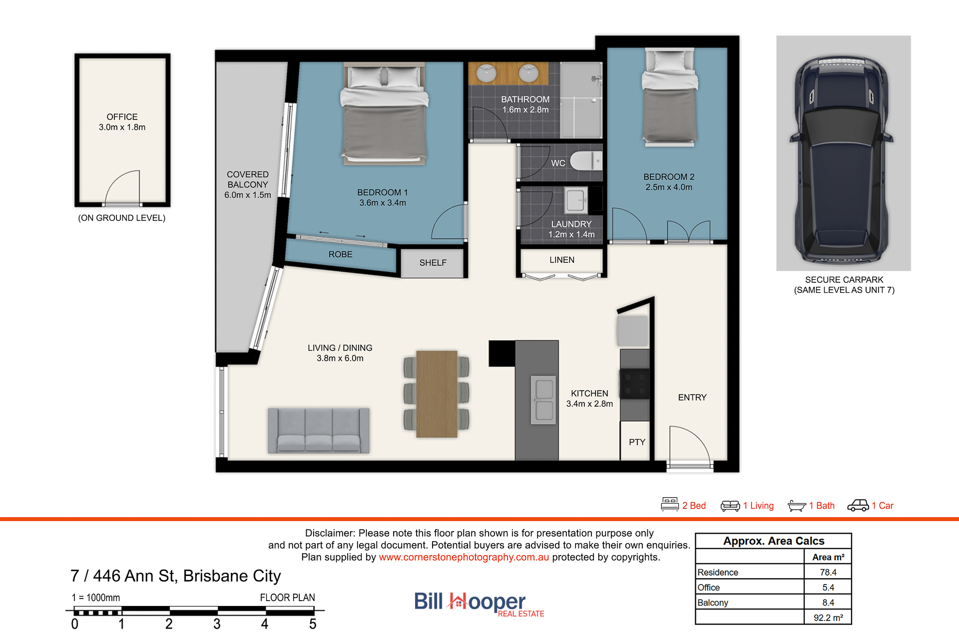•    Approx. 98m² of internal living space + private balcony